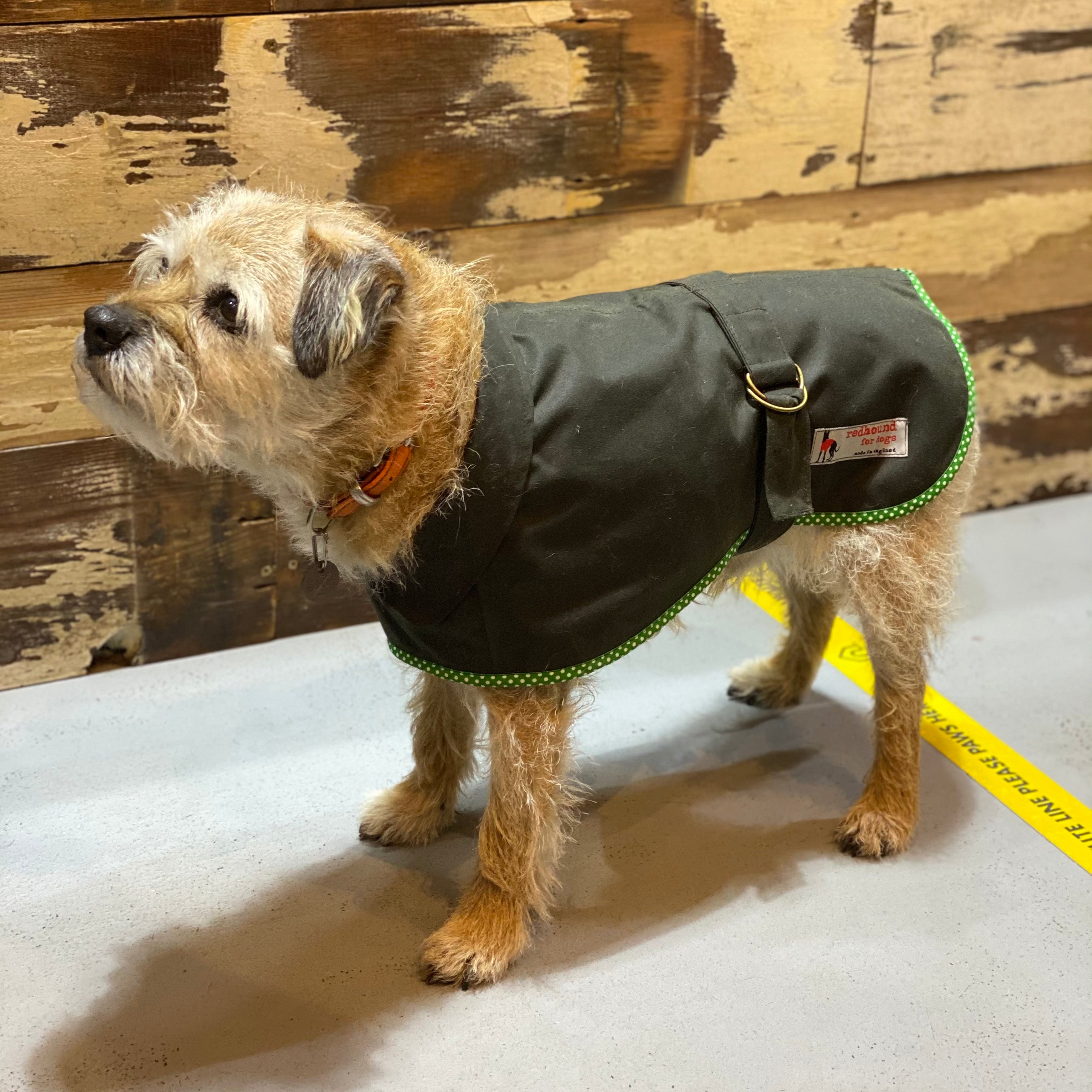 The Original Wax Jacket for Dogs, made exclusively for us by Redhound for Dogs.