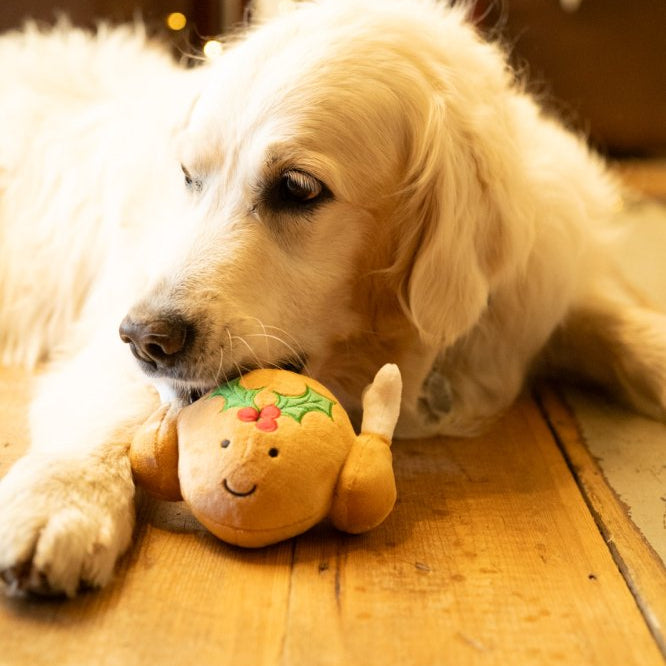 Let your pup join in the fun of Christmas dinner with their very own Tasha Turkey Toy. Made from super soft fleece with embroidered holly, eyes and a cute smiley mouth. Soft, cuddly and super cute. Great for playing fetch and encouraging exercise or could be your best friends new favourite snuggle buddy. Includes a built in squeaker, perfect for playful dogs. Not suitable for large dogs or strong chewers.