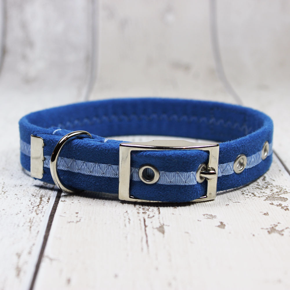 We have nicknamed these Oscar & Hooch Collars the "Old School Dog Collar" because we think they wouldn't look a-miss on the playing fields amongst your old school colours.  This very British dog collar is handmade for us in England by Oscar & Hooch using a super-soft, faux suede that looks and feels like the genuine article but unlike suede it is water friendly, machine washable, stain resistant, all in all a brilliant imposter of suede!