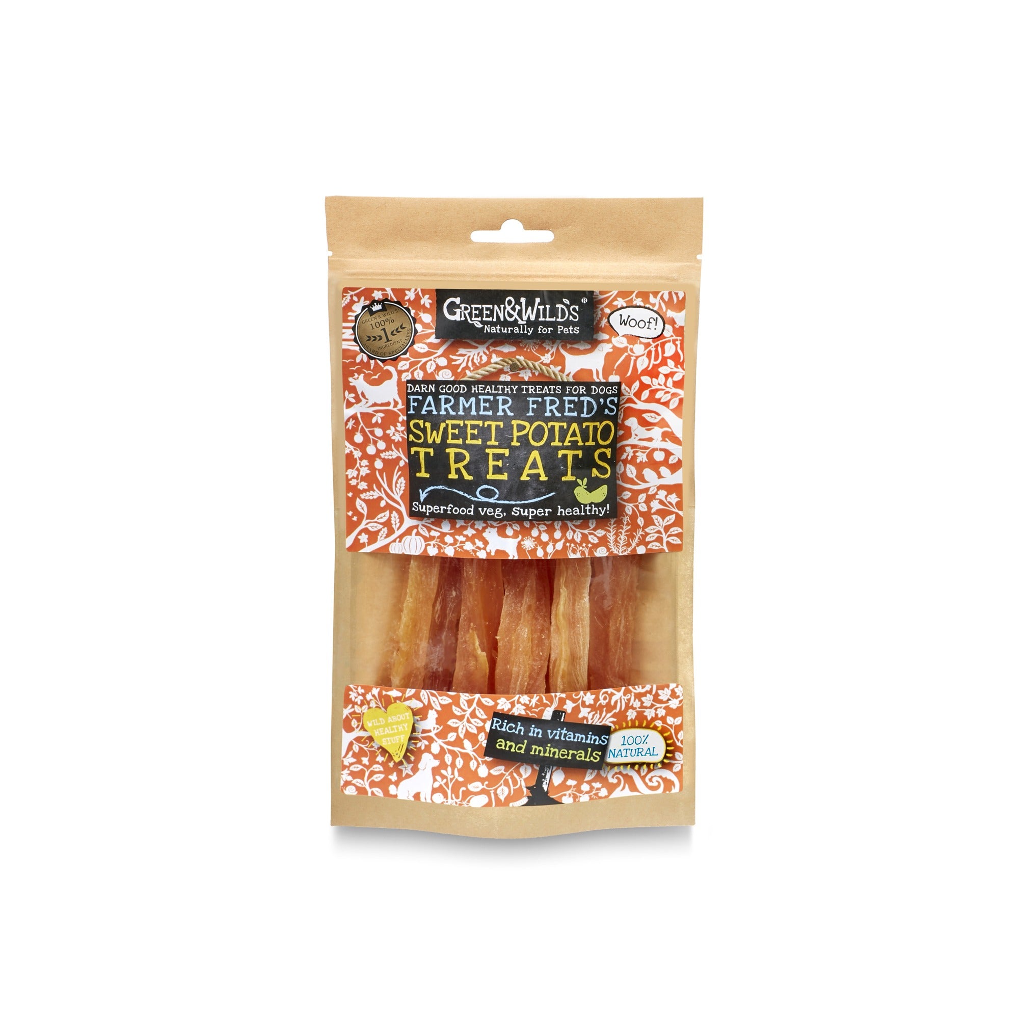 The texture of our Sweet Potato Treats acts as a natural toothbrush, helps keep teeth healthy and promotes fresh breath. It is 100% natural, containing no animal by-products or preservatives.
