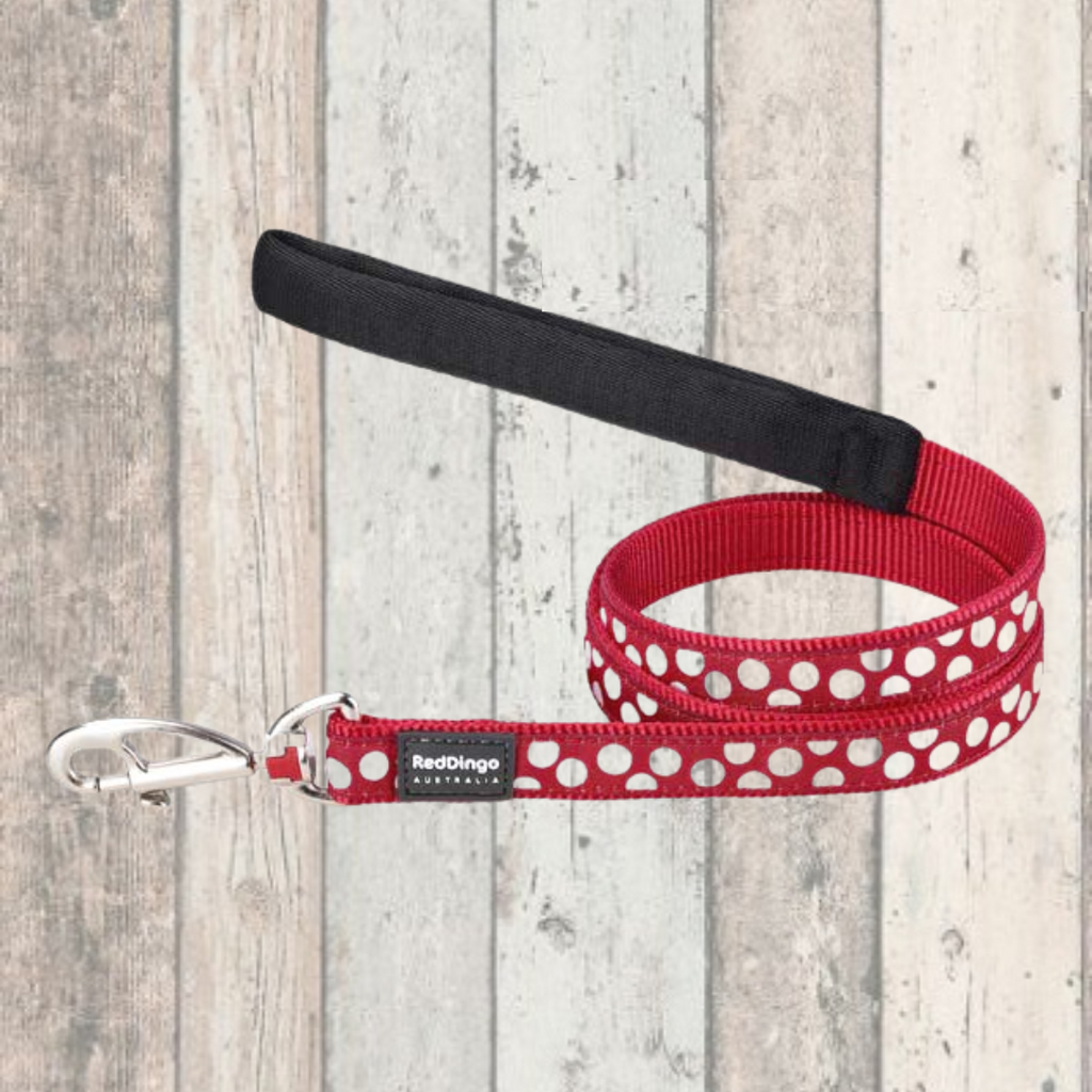 Red Polka Dot Dog Lead by Red Dingo